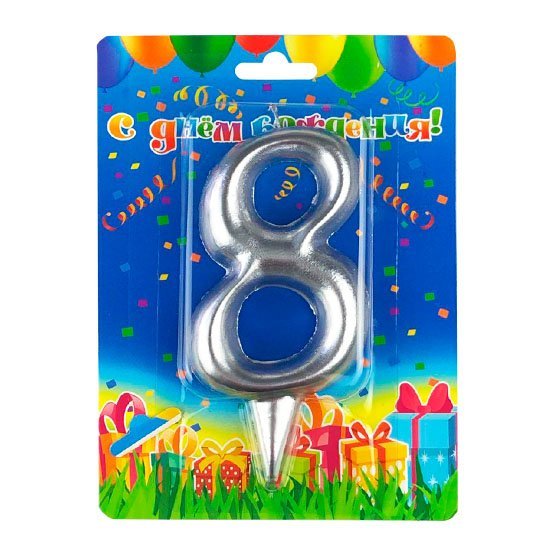 —Свеча цифра-гигант 8 серебро