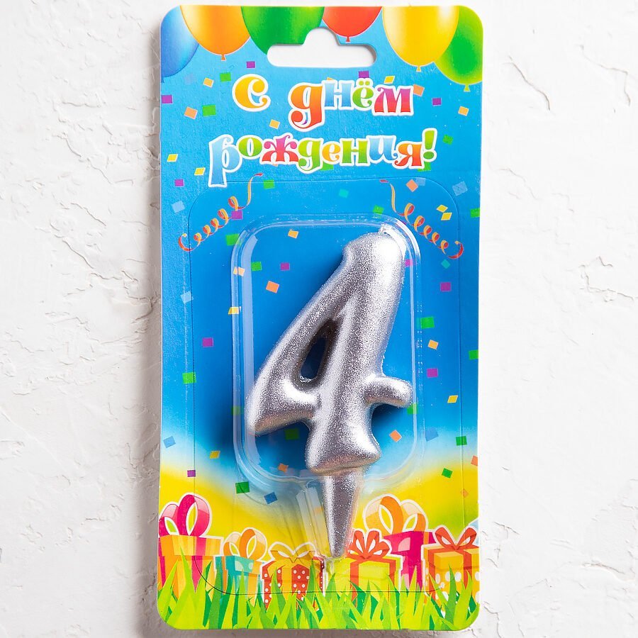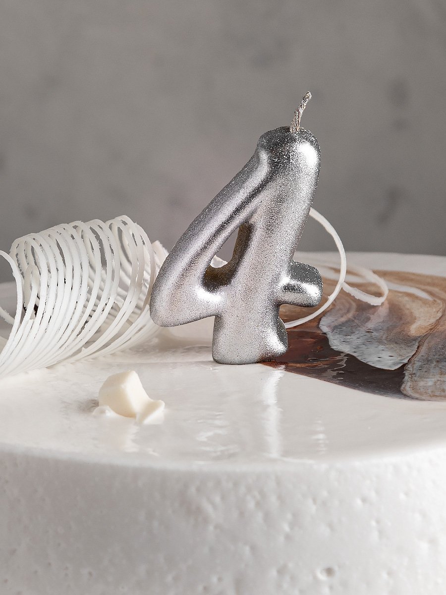 —Свеча цифра 4 "Овал" серебро