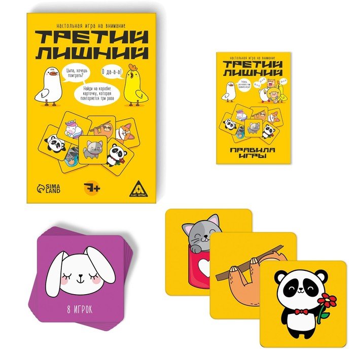 В этой игре обязательно есть третий лишний, ваша задача — найти его раньше соперников. Иначе получите штрафные очки. Проверьте, у кого из вас самый зоркий глаз!