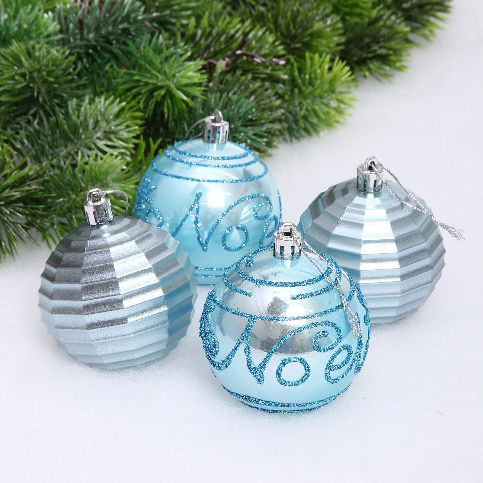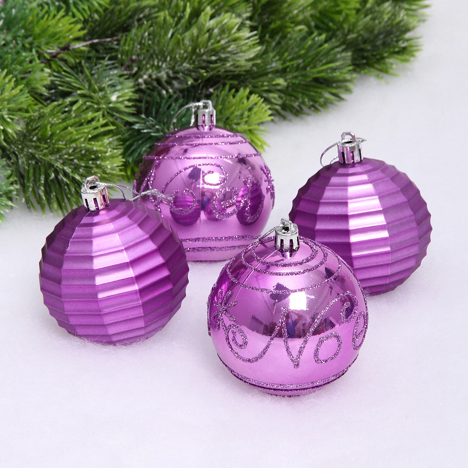 —Набор шаров "Зимний коллаж" 7 см (в наборе 4 шт)