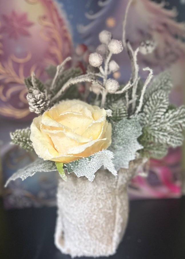 —Елка настольная Заснеженная с Розой и ягодами 350