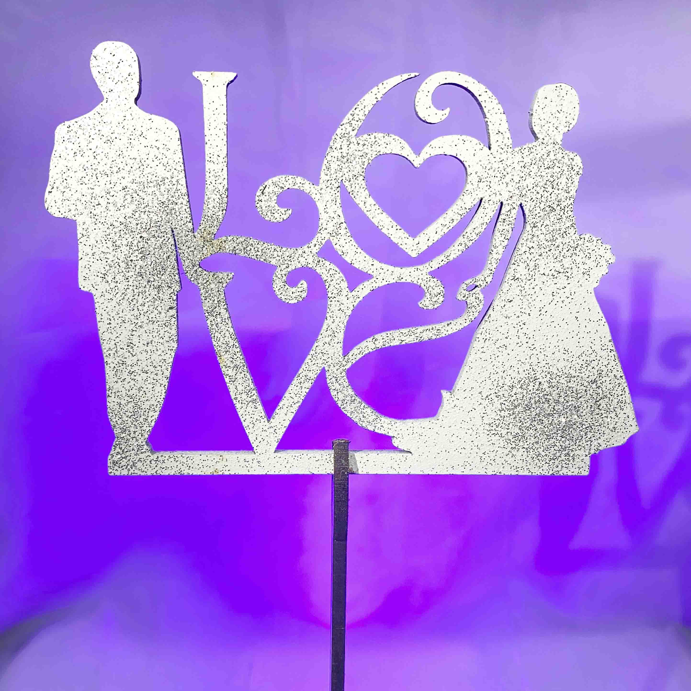 Топпер деревянный окрашенный надпись (с блёстками) Молодожены