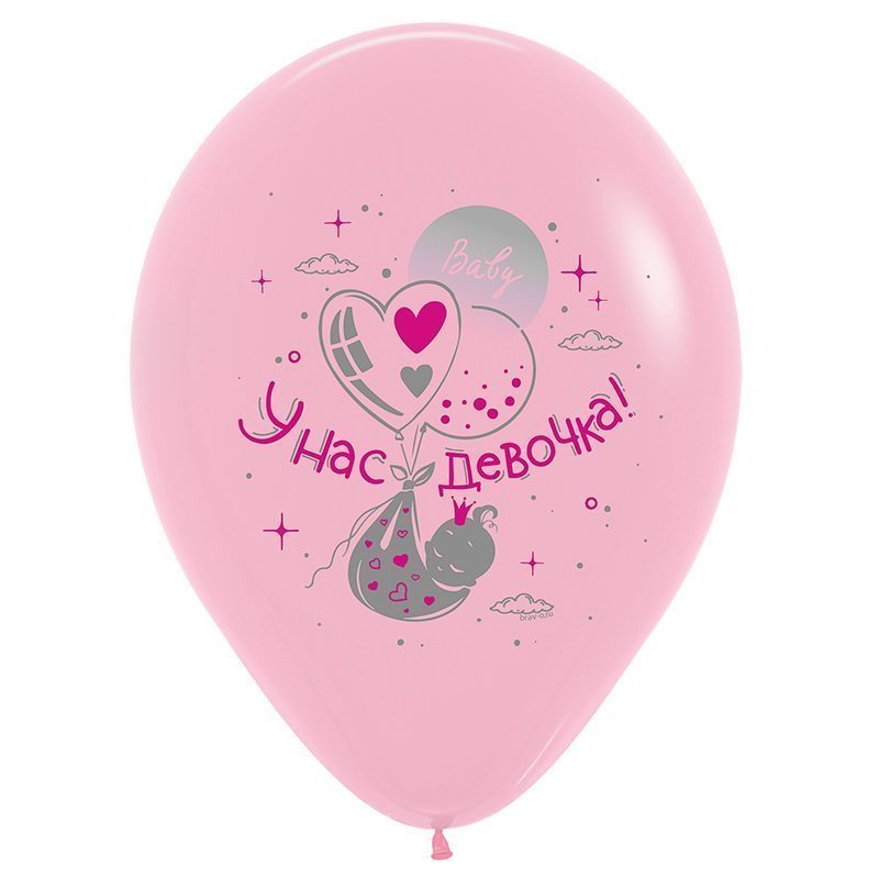 —V 12 У нас девочка, Ассорти.Пастель, 2ст, 2цв.Латексный шар (Россия)