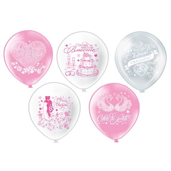 Шар12" Пастель шелк рис. 2ст. Свадьба. Нежность 5 дизайнов
