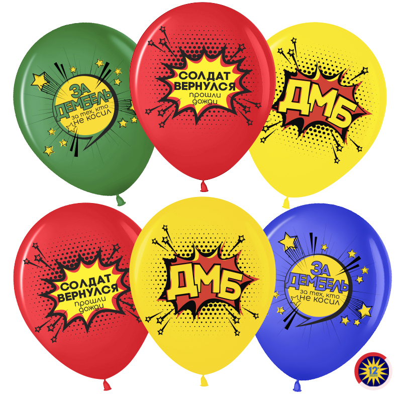 Шар (12"/30 см) Дембель, Ассорти, пастель