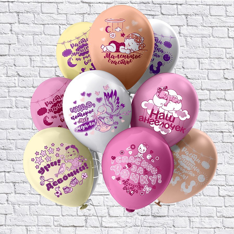 Шар12" Пастель шелк рис. 2ст. 2 цв. Новорожденные. Девочка 5 дизайнов